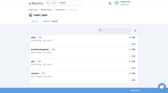 Mashuのデータ構造は、組織の下にプロジェクトがあり、プロジェクトの下にメタデータソースがあります。メタデータソースは、データを管理するシステムの単位に作ります。